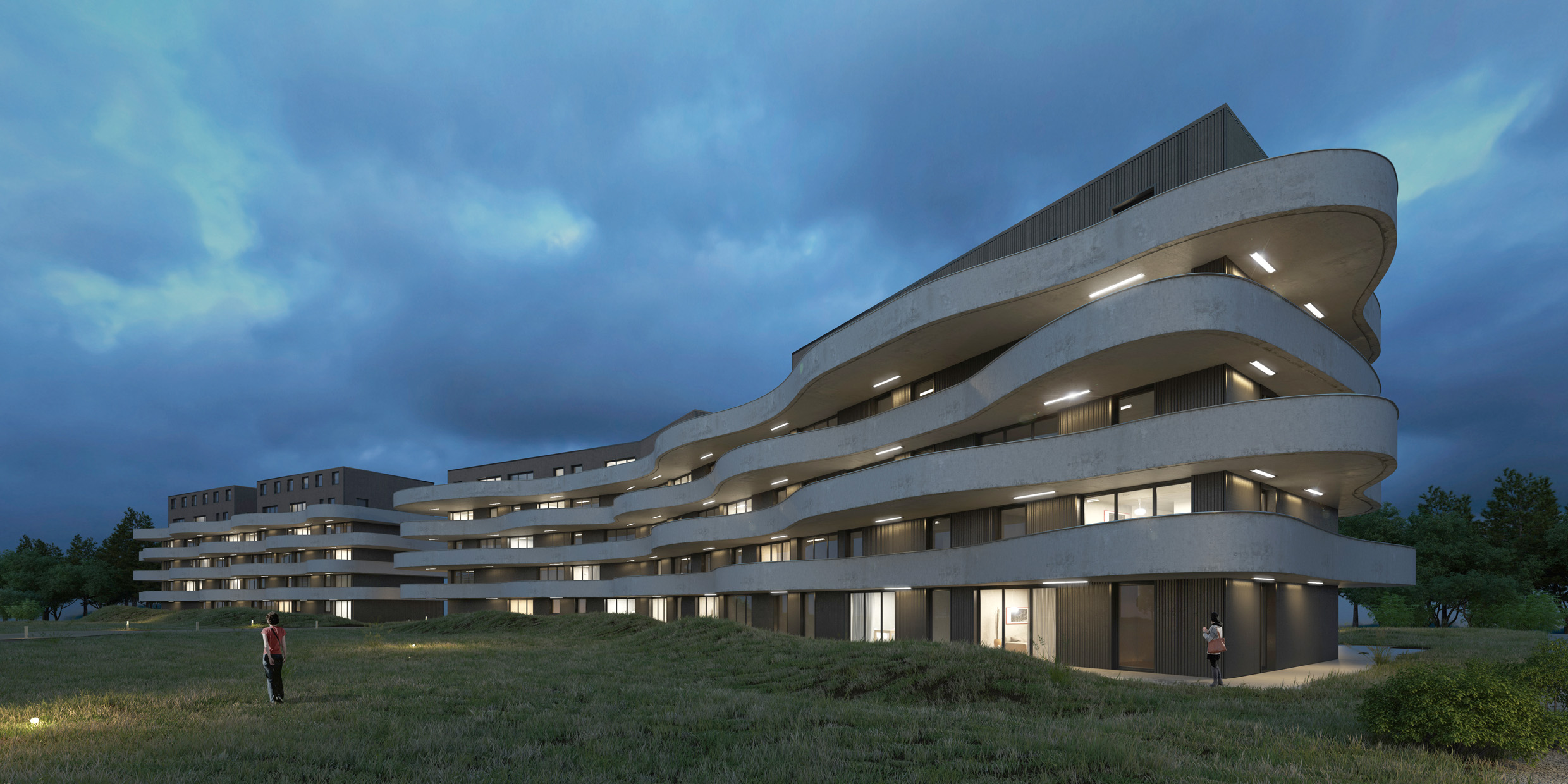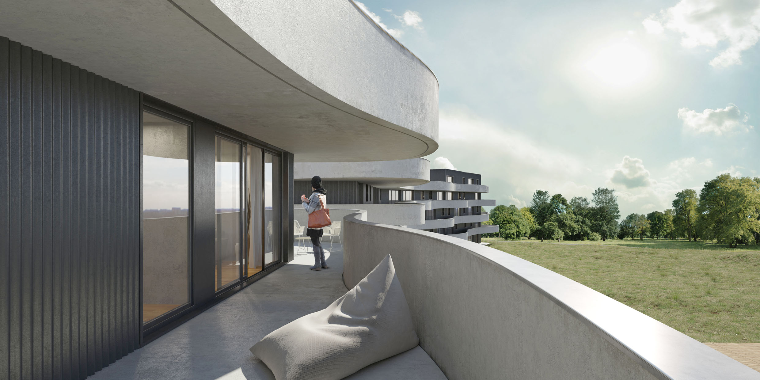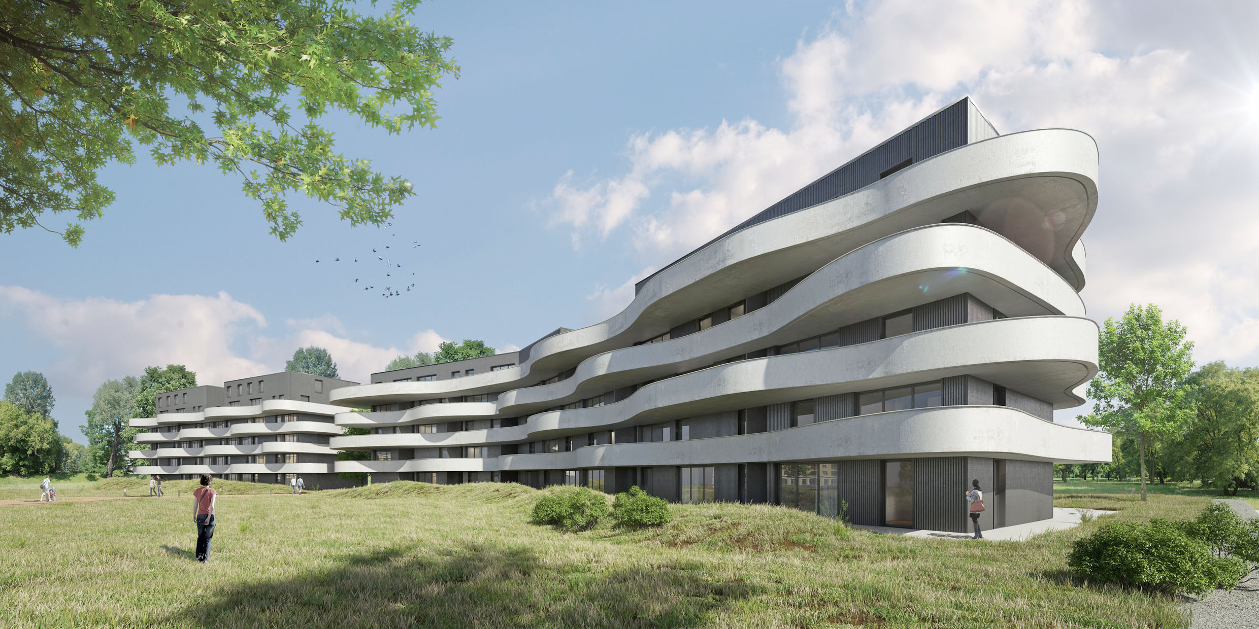 - Des espaces verts valorisés avec une augmentation de leur superficie malgré 326 logements supplémentaires grâce au stationnement passé en sous-terrain, le maintien d’une majorité d’arbres déjà existants et la conception de logements bénéficiant d’une ouverture vers l’extérieur (jardin privatif, balcon, loggia, terrasse).